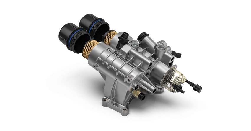 UFI柴油濾清器由鋁制機身制成,重量得以減輕,同時得益于同一模塊中的雙重功能,可實現(xiàn)最佳過濾性能。預(yù)濾器對于10μm顆粒物的過濾效率為90%,有效阻擋較粗顆粒物,而第二部分精細過濾則在濾清器內(nèi)進行,對于4μm以下顆粒物的過濾效率達到98%以上。柴油模塊還配備了用于冷啟動的燃料加熱器、水位傳感器以及防止堵塞的壓力傳感器。