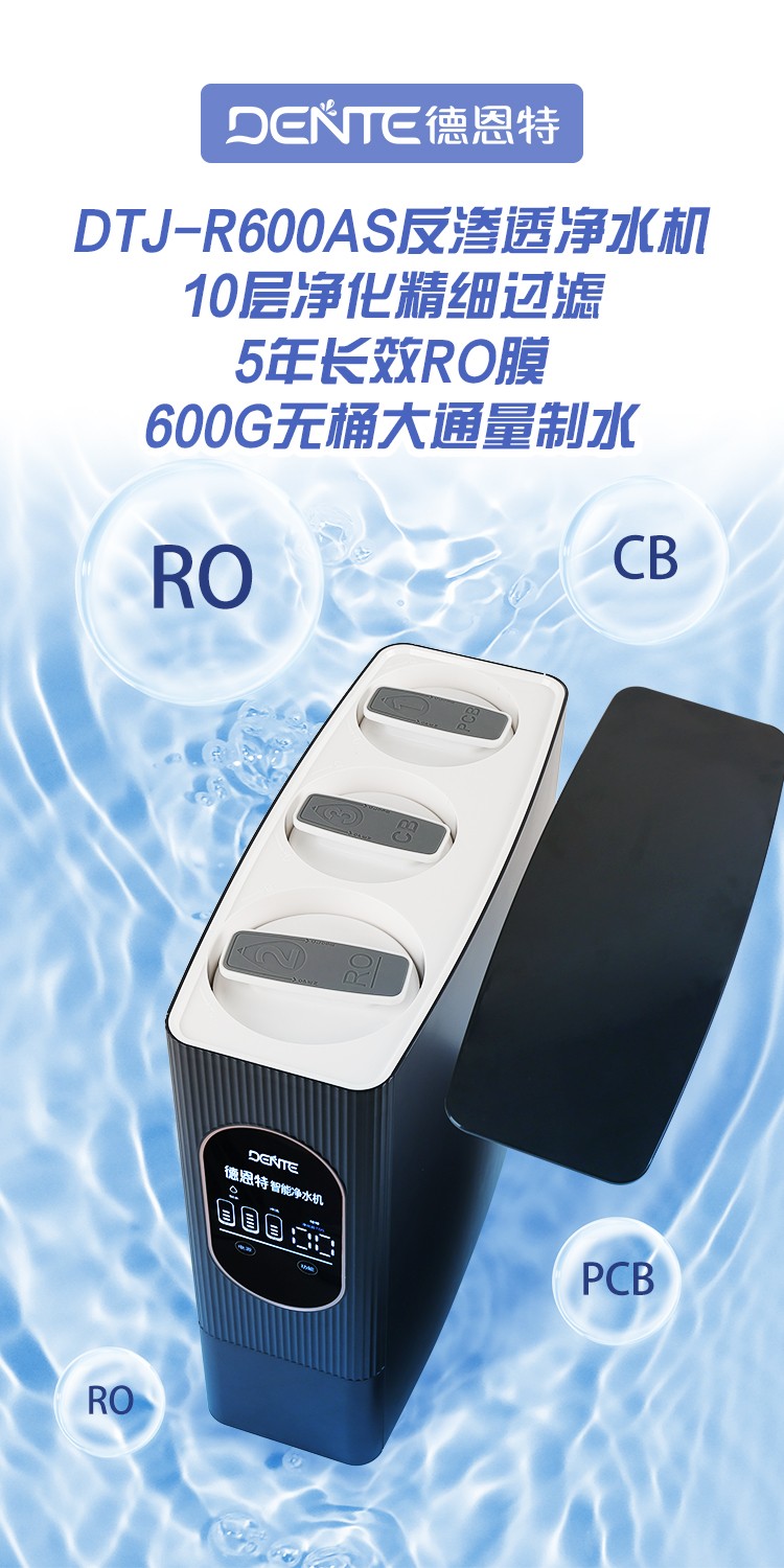全新德恩特DTJ-R600AS(反滲透)真效600G無桶大通量制水與DTJ-R1000AS(反滲透)真效1000G無桶大通量制水,用戶日常喝水、泡茶、煲湯時接水再也不用漫長等待,出水順暢讓心情也更輕松舒暢。